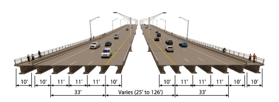 This segment of the project includes the two new bridges that replace the aging structures going across the Caloosahatchee River. Major improvements include an additional travel lane in each direction and separate pedestrian/bicyclist facilities to enhance safety.